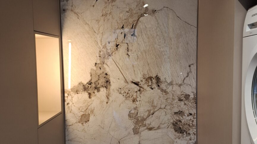 Marmerlook wandpaneel in de keuken